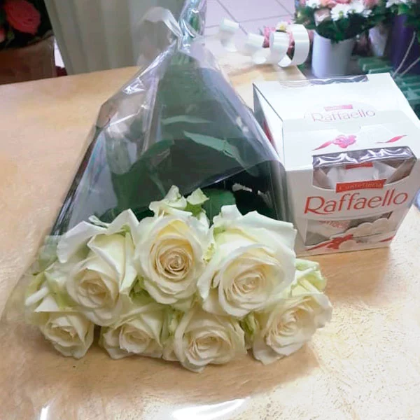 АЛЛА / 04.12.2019Оценка букета:Спасибо большое за доставку!Цветы свежие,крупные.Открытка очень красивая,необычная!Доставка вовремя!Только к цветам заказывали коробку конфет Алёнка,но прислали Рафаэлло.
